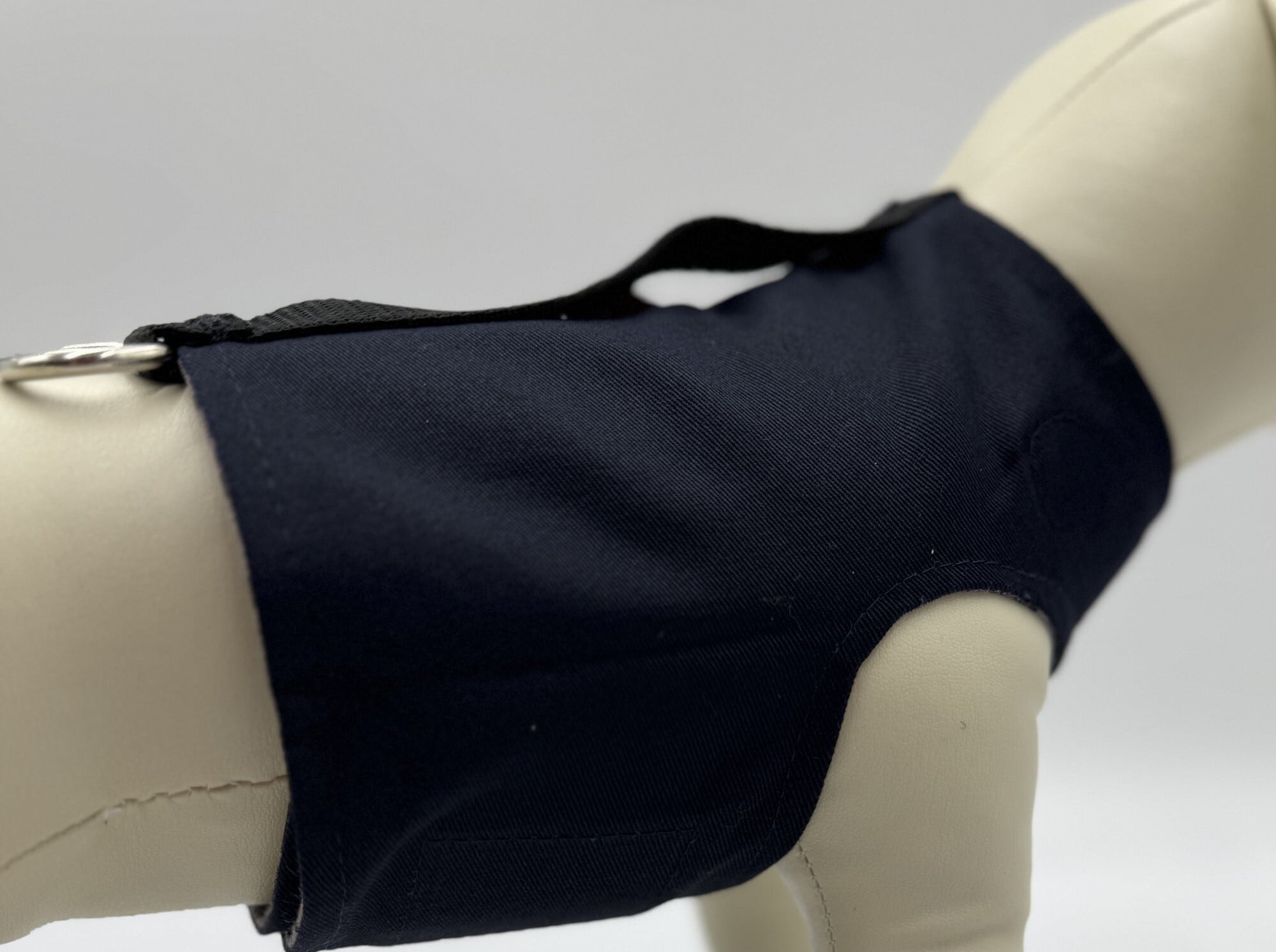 背面にはナイロン製ベルトがついており、夜間散歩時のライトや虫除けアイテムを装着することもできます。また緊急時に愛犬を素早く抱き上げることが可能です。
