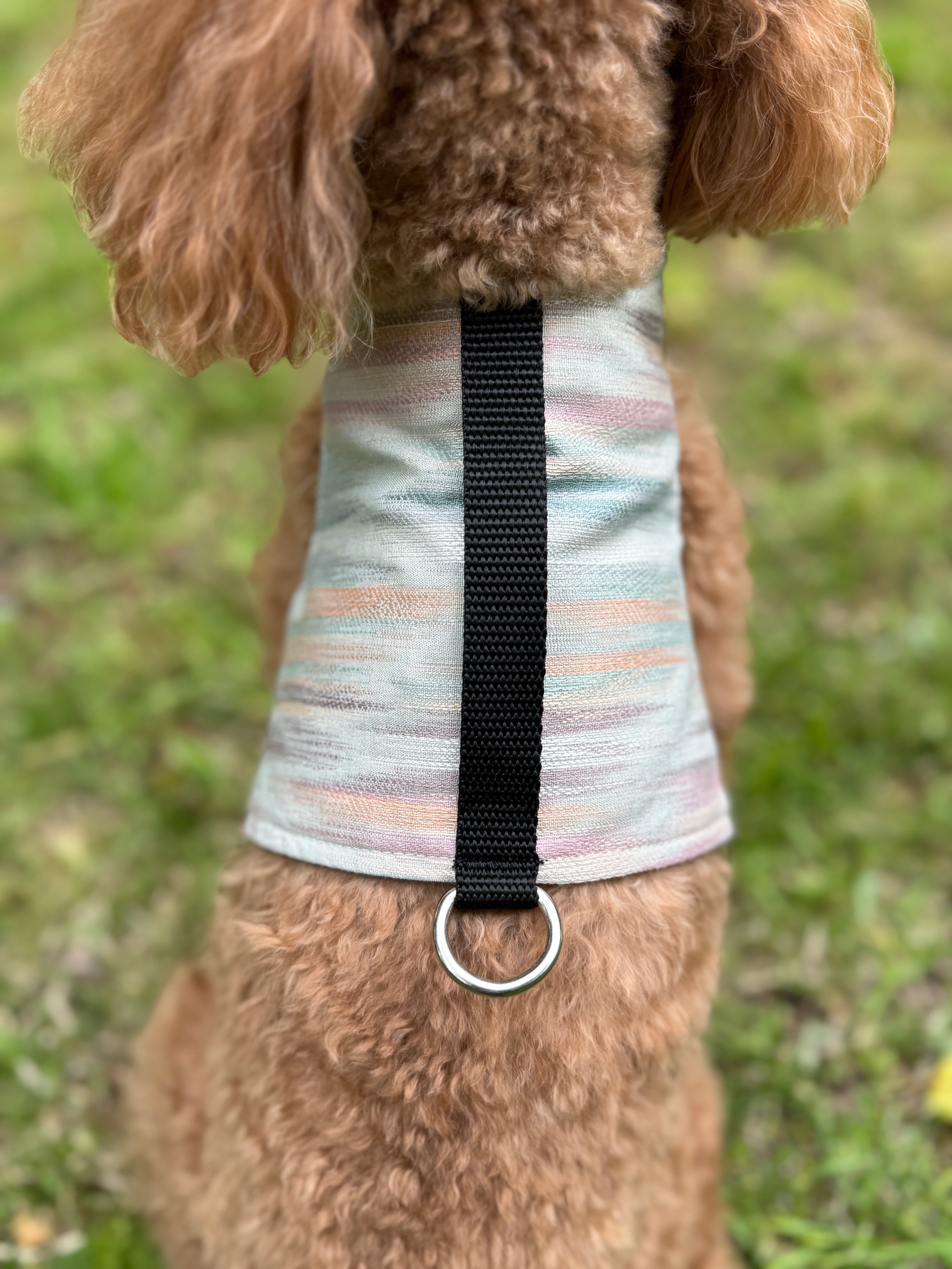またリード装着部のDリングは重心位置を考慮しハーネス後部(犬の身体の中央)に配置されています。これによりリードを引っ張る力が犬の胴体に分散され、気管・脊椎・腰の怪我を予防します。