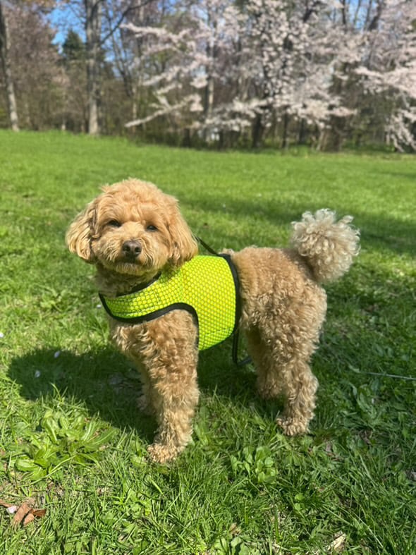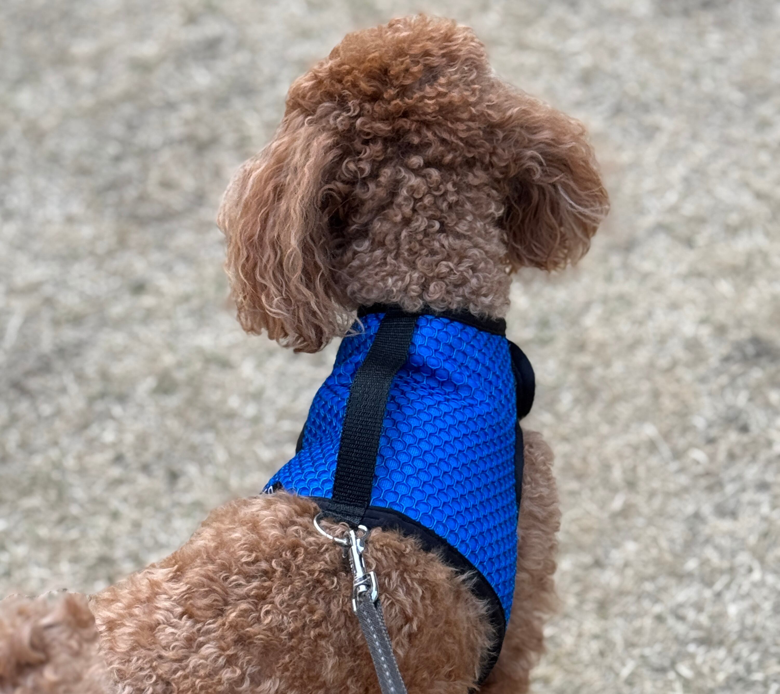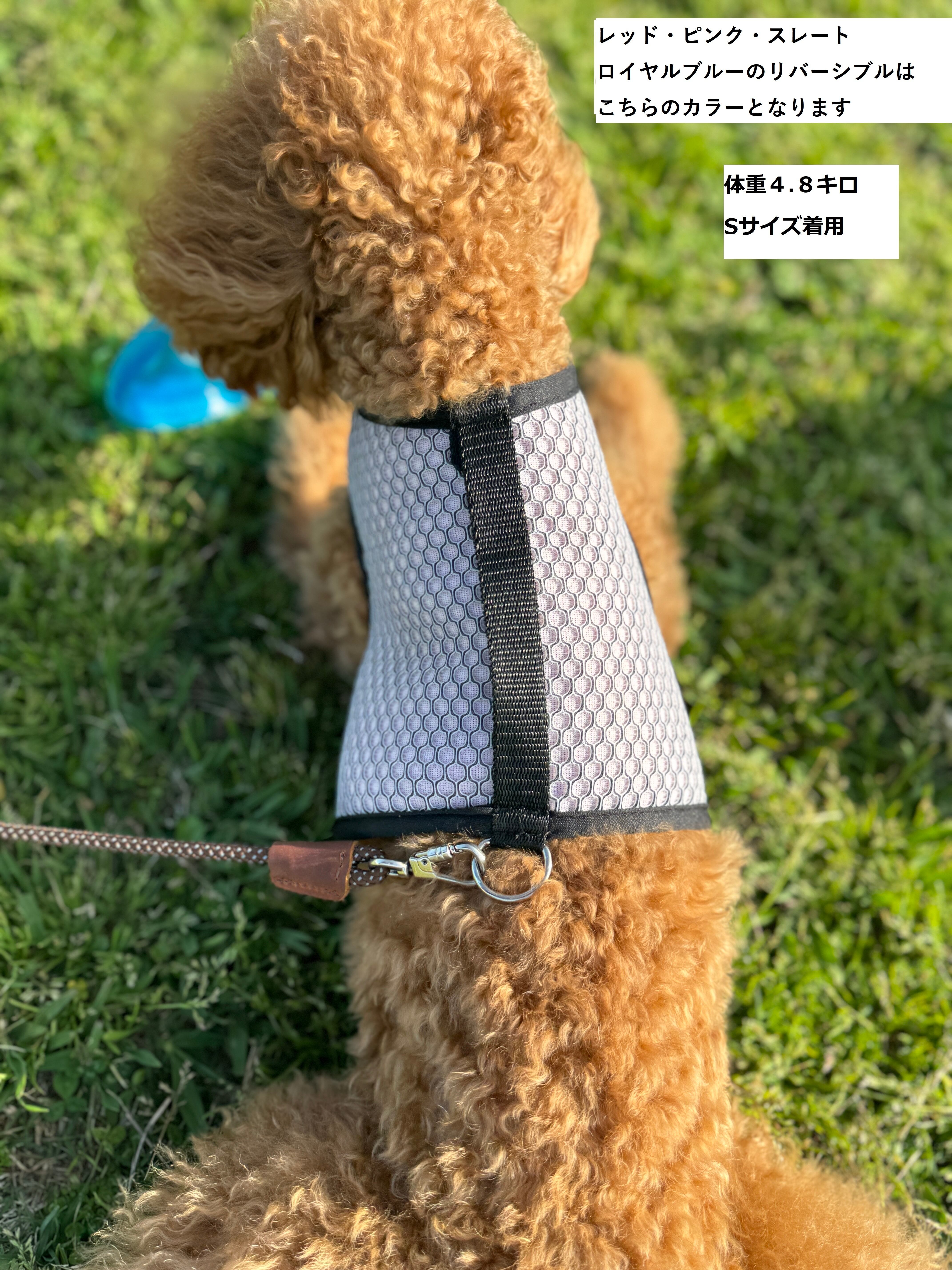 またリード装着部のDリングは重心位置を考慮しハーネス後部(犬の身体の中央)に配置されています。これによりリードを引っ張る力が犬の胴体に分散され、気管・脊椎・腰の怪我を予防します。