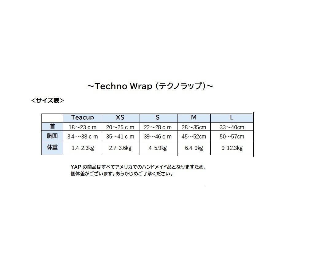 YAP Wrapシリーズは米国の特許権を取得しています。愛犬の身体を包み込むように装着することで愛犬に安心感を与えるとともに、首の締め付けを防止し、呼吸を阻害しません。