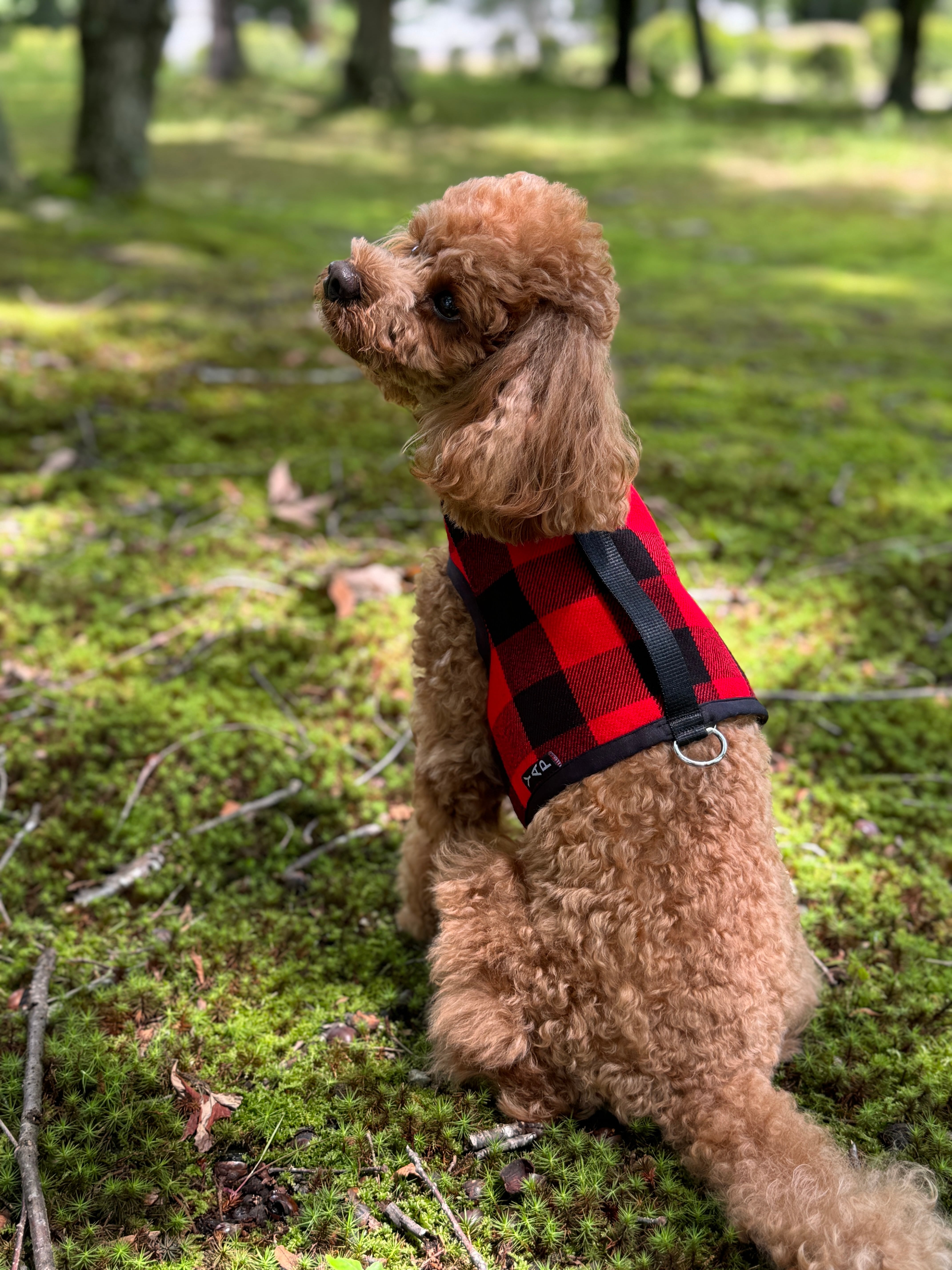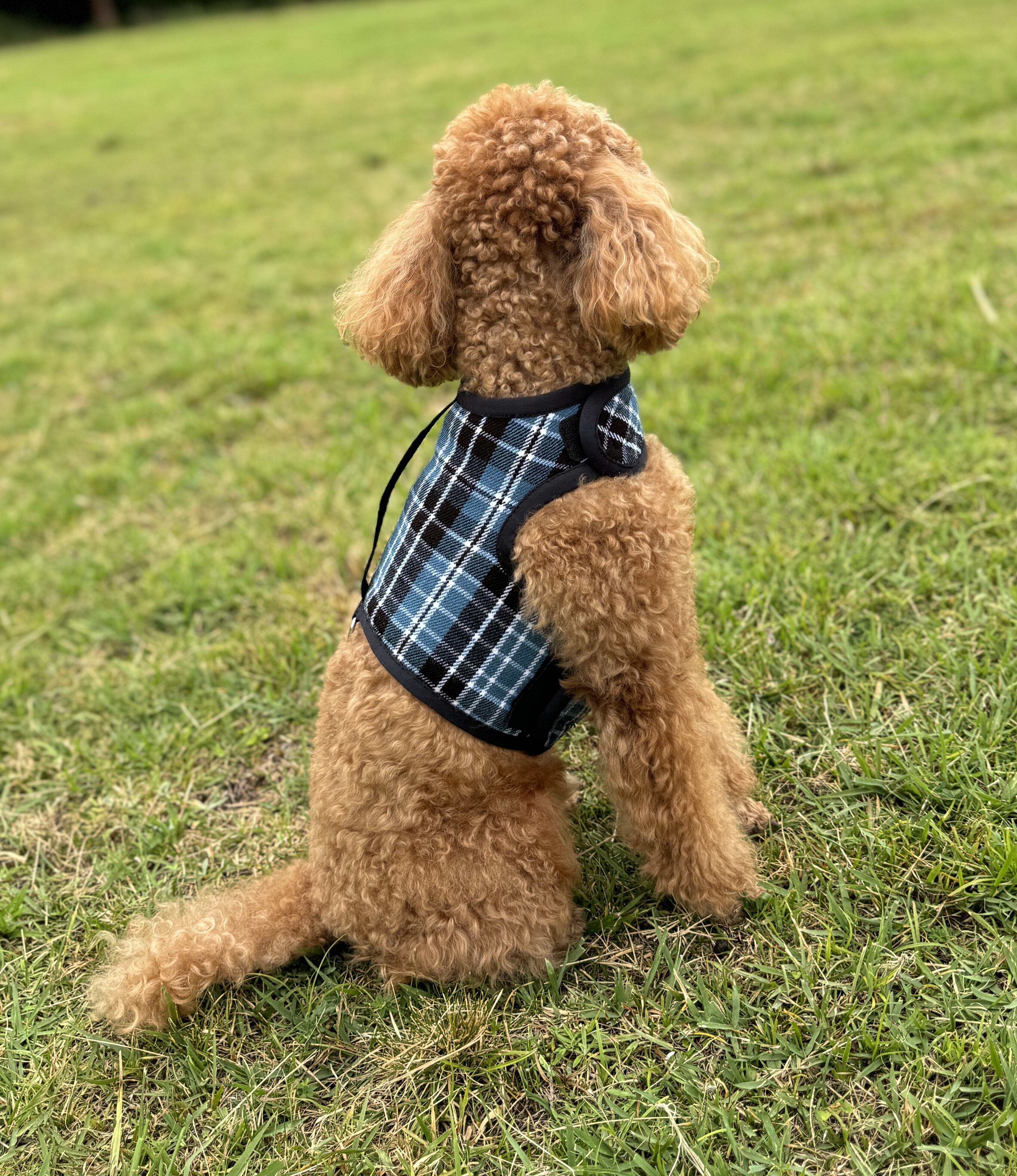 またリード装着部のDリングは重心位置を考慮しハーネス後部(犬の身体の中央)に配置されています。これによりリードを引っ張る力が犬の胴体に分散され、気管・脊椎・腰の怪我を予防します。