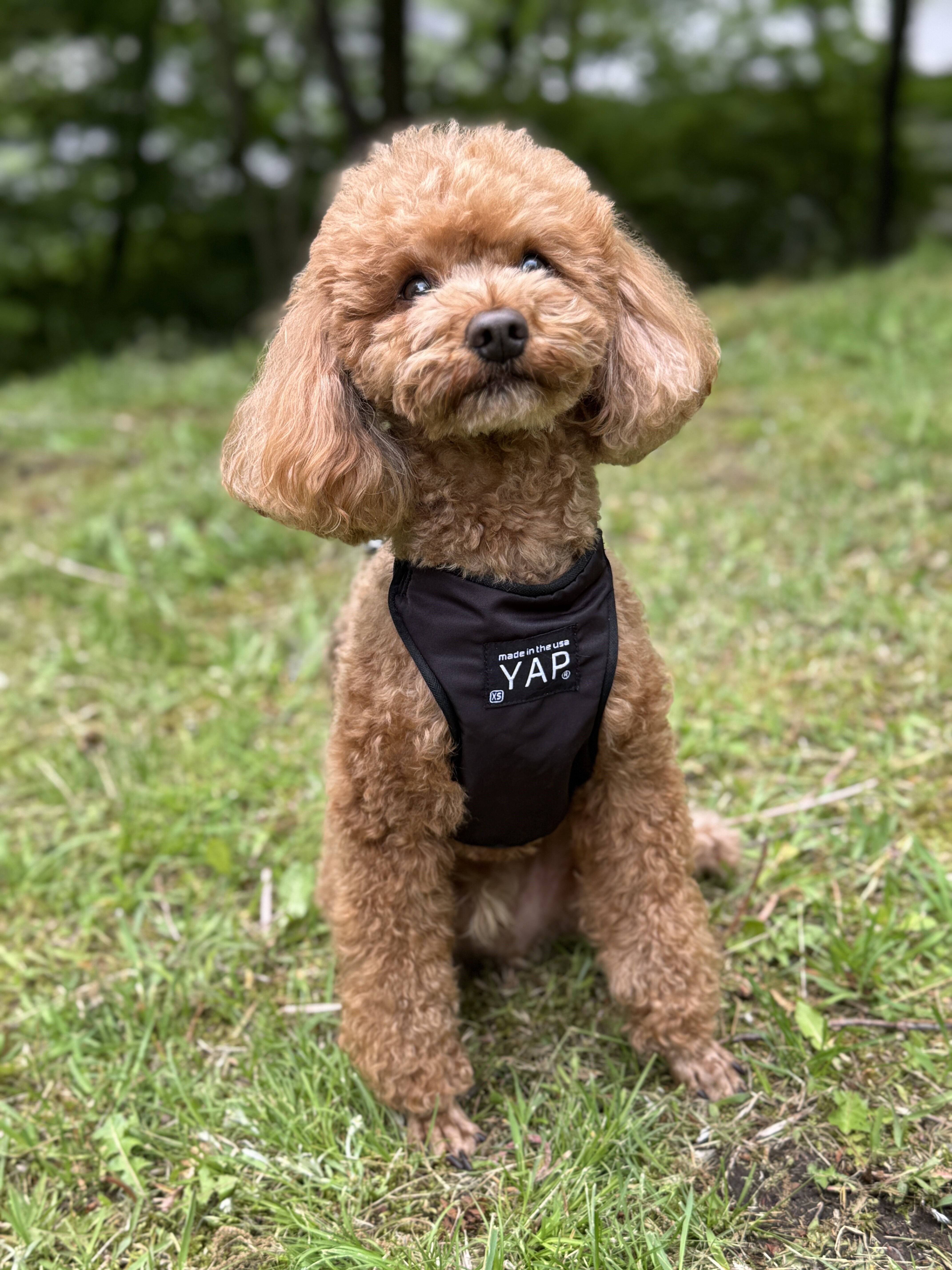 Techno Harness(テクノハーネス)は軽量・静電気防止・温度調節など多機能なハーネスです。前後4カ所のベルトはすべて調節が可能で、洋服の上からも着用でき通年でお使いいただけます。使用しているバックルは身体のラインに合わせたカーブを施し毛や洋服生地との摩擦を抑えます。