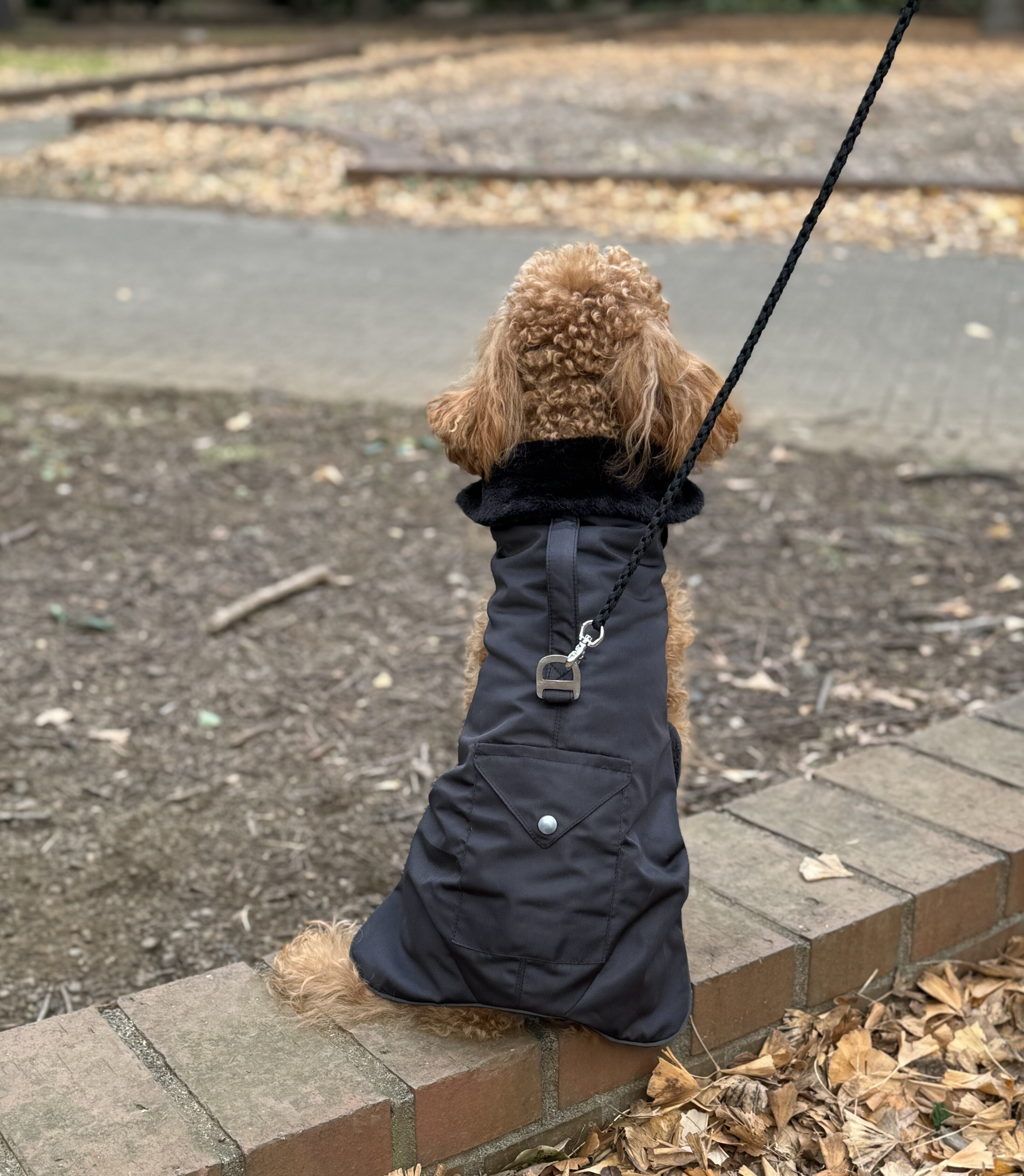 内側にはボア素材、襟元内側にはファー(フェイク)をあしらうことで、寒さから愛犬を守りるだけでなく、高級感を演出してくれます。