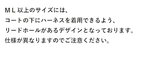 コートの下にお手持ちのハーネスまたはカラーを装着後ご使用ください。