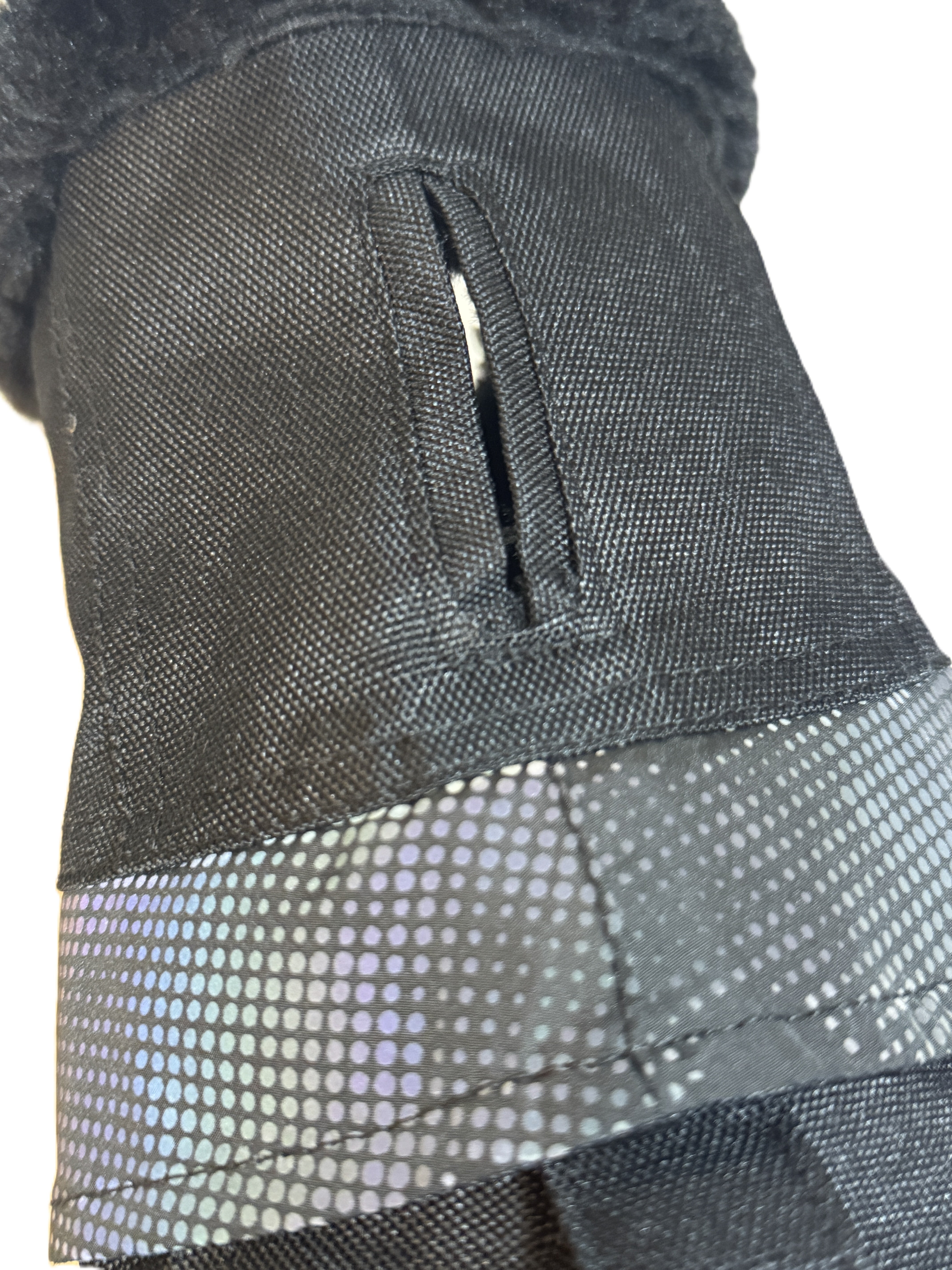 襟元に反射材加工されておりますが、その反射材の接着が弱く取れてしまいます。