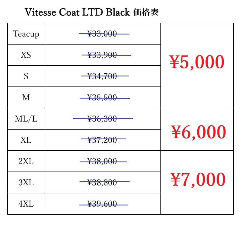 B級品 Vitesse Coat (LTD Black) 2XL~4XLサイズ