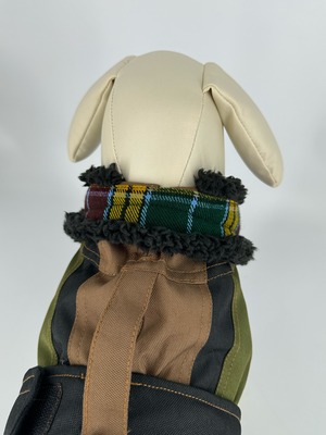 首元にはジッパーが装着されており、折り返してご使用いただくことも可能です。襟内側は折り返した際にチェック柄が見える使用になっており、暖かいだけでなく愛犬の顔周りに華やかさがプラスされます。