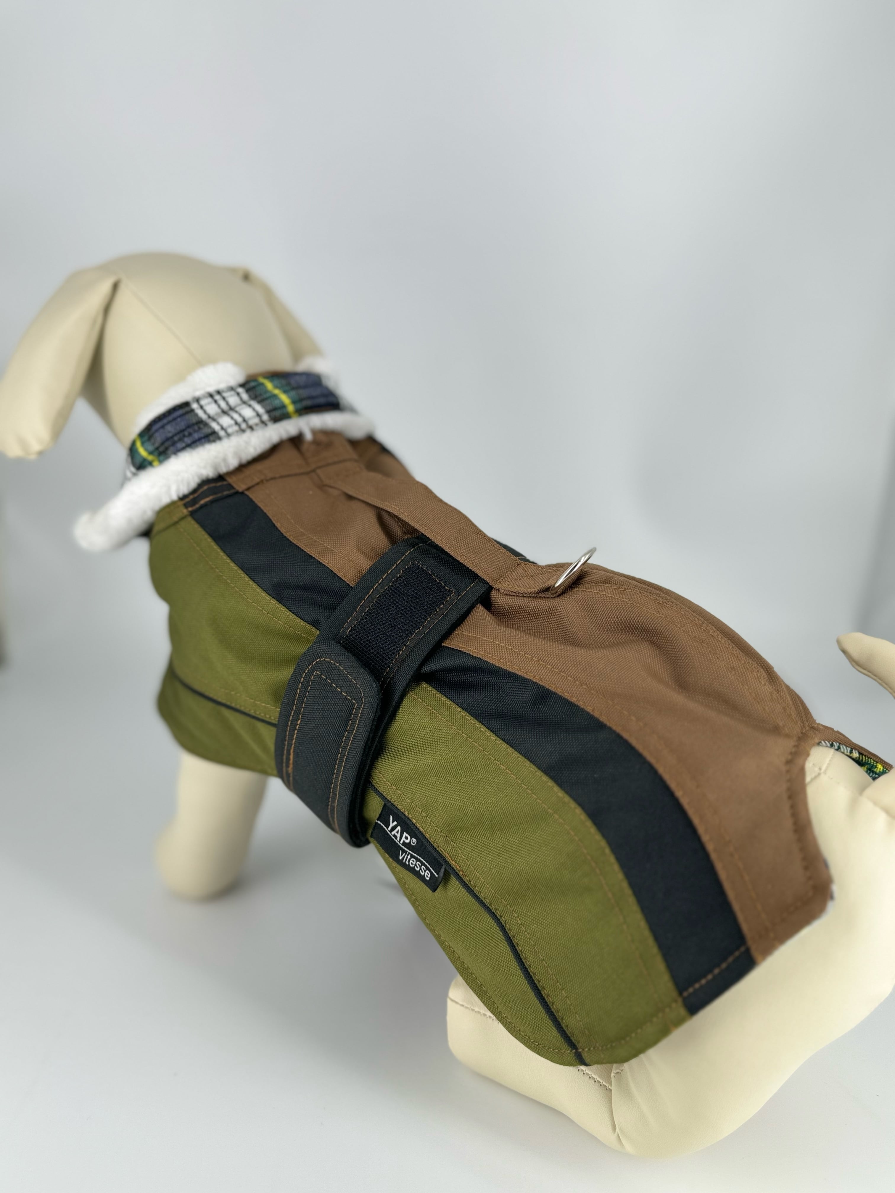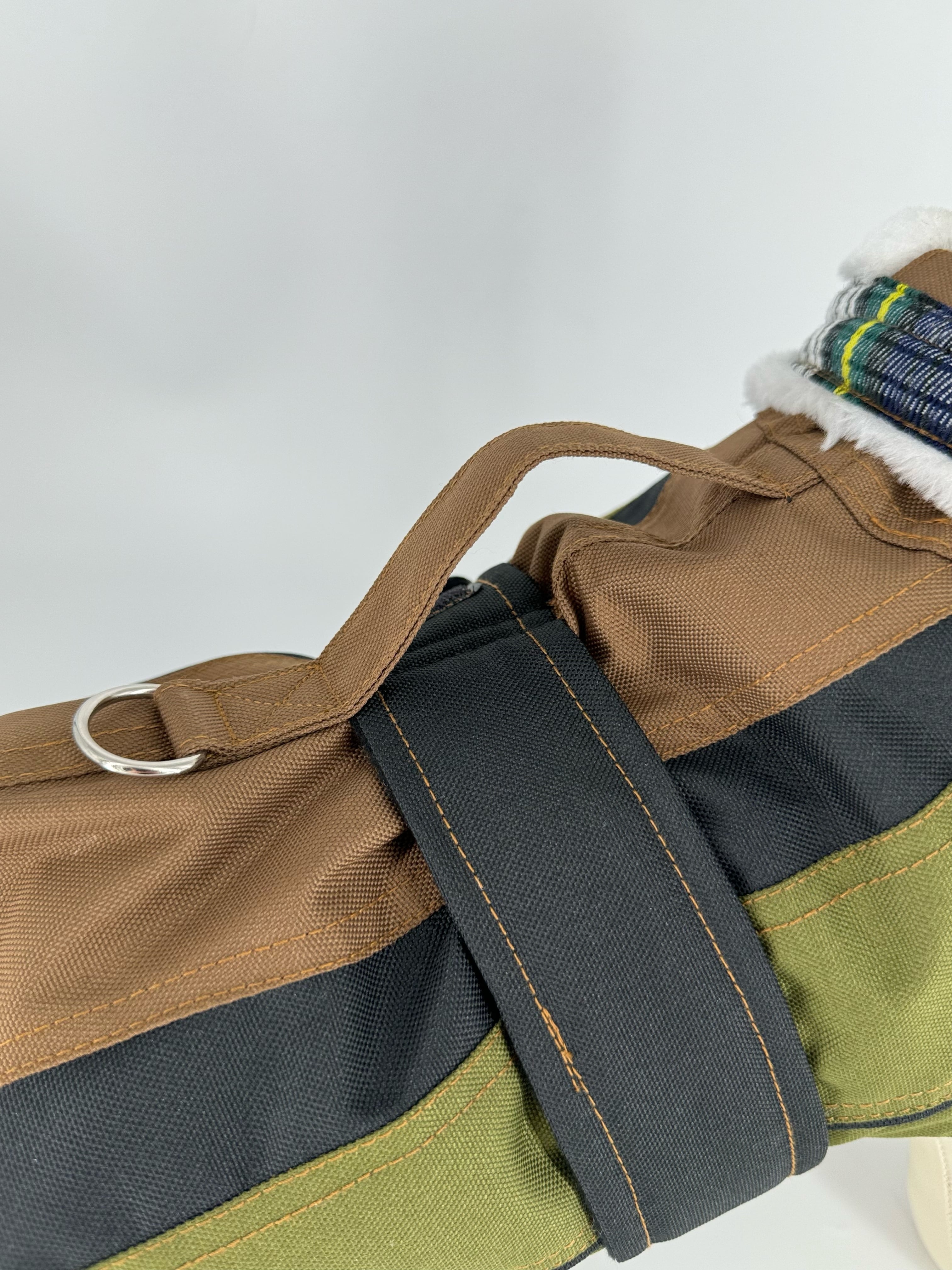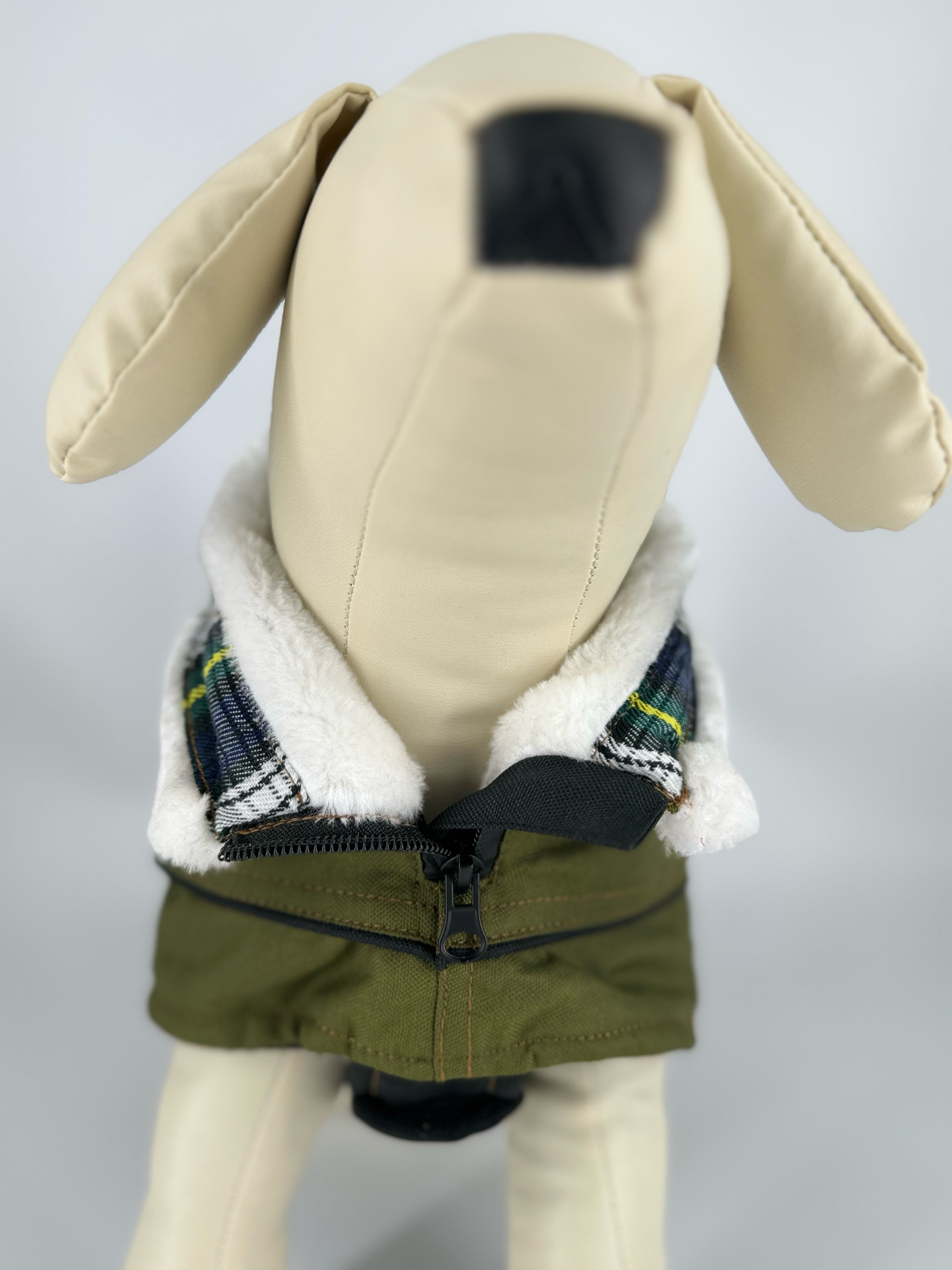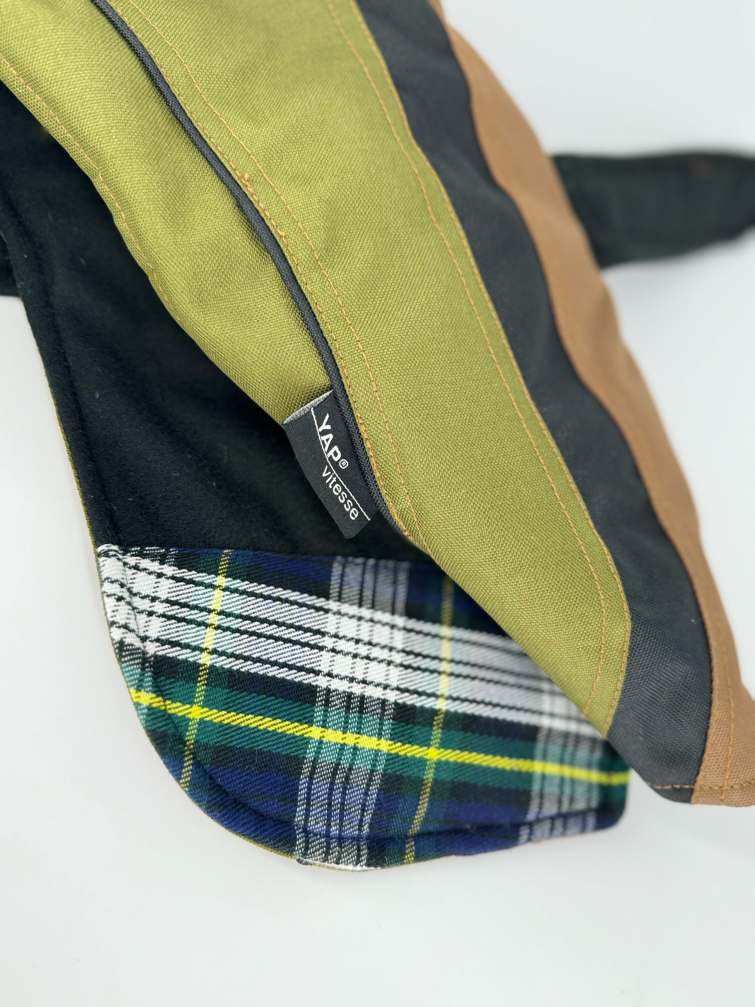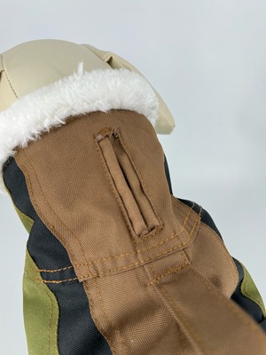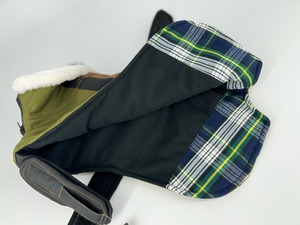 首元にはジッパーが装着されており、折り返してご使用いただくことも可能です。襟内側は折り返した際にチェック柄が見える使用になっており、暖かいだけでなく愛犬の顔周りに華やかさがプラスされます。