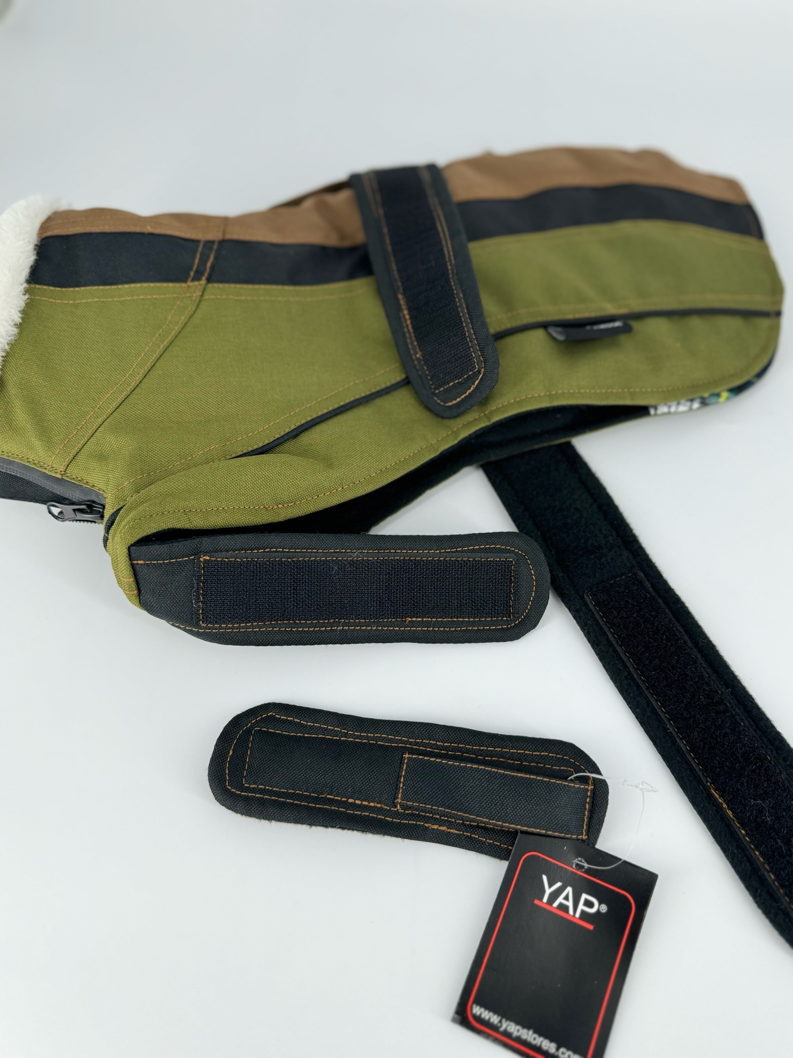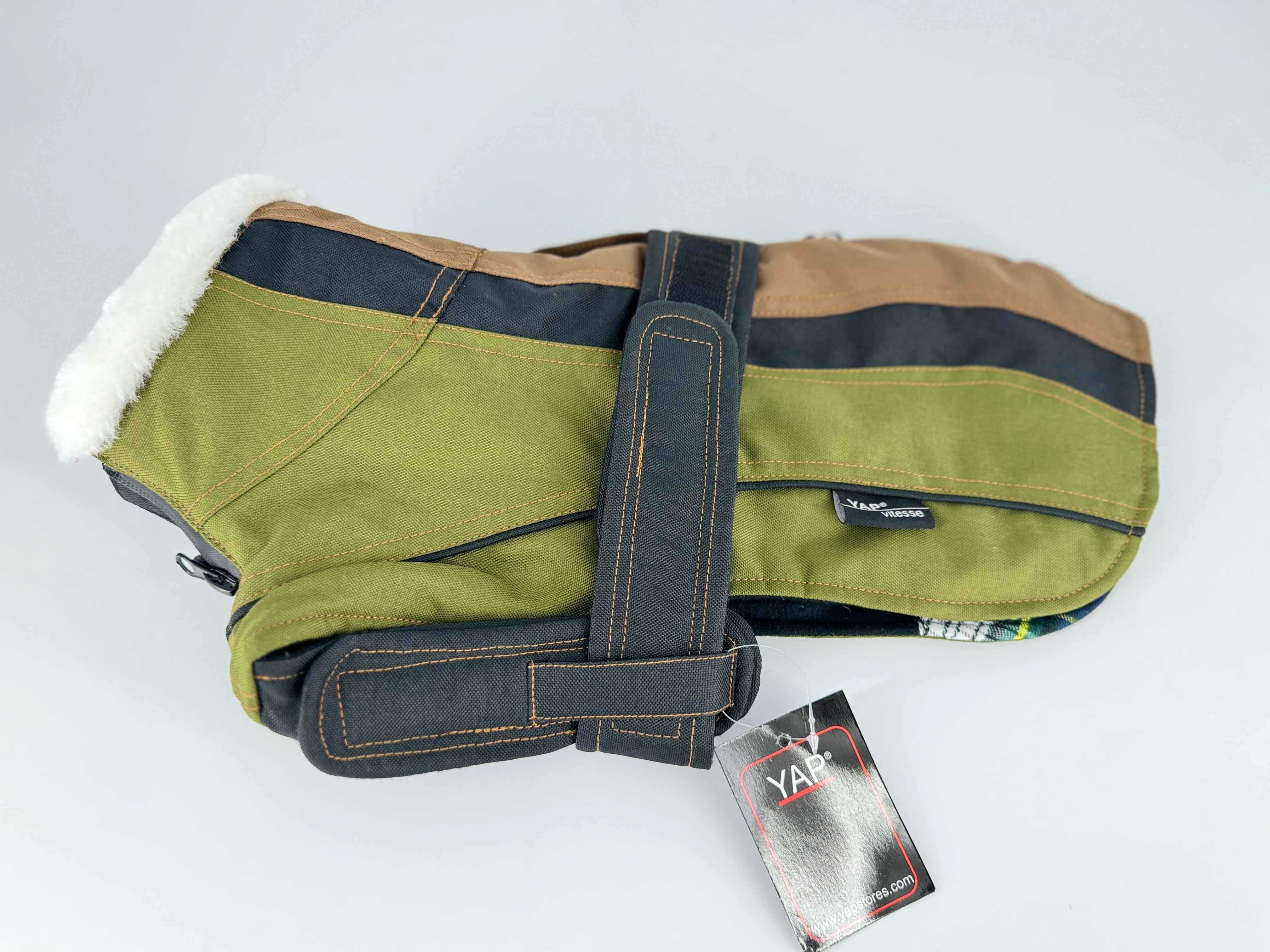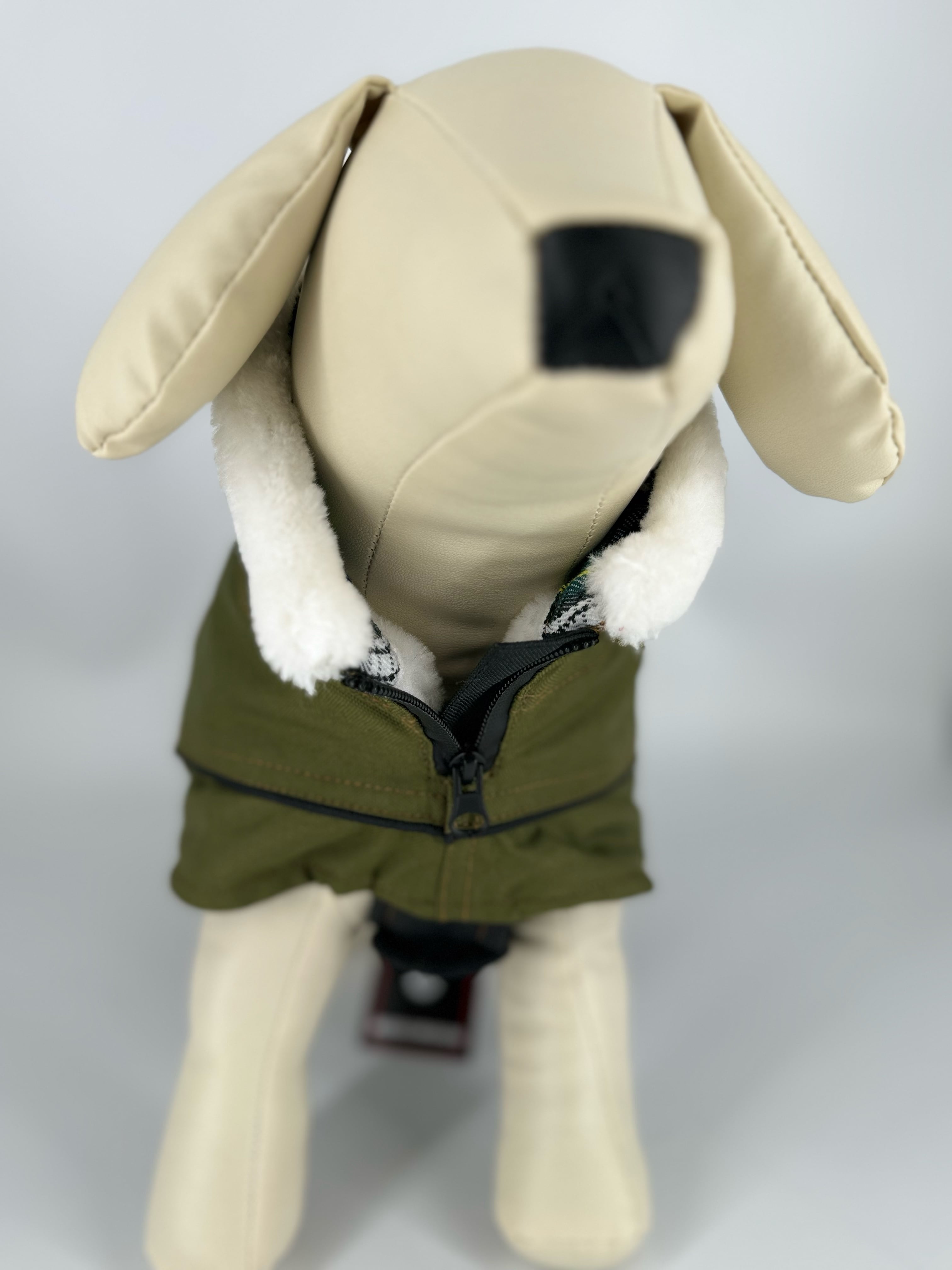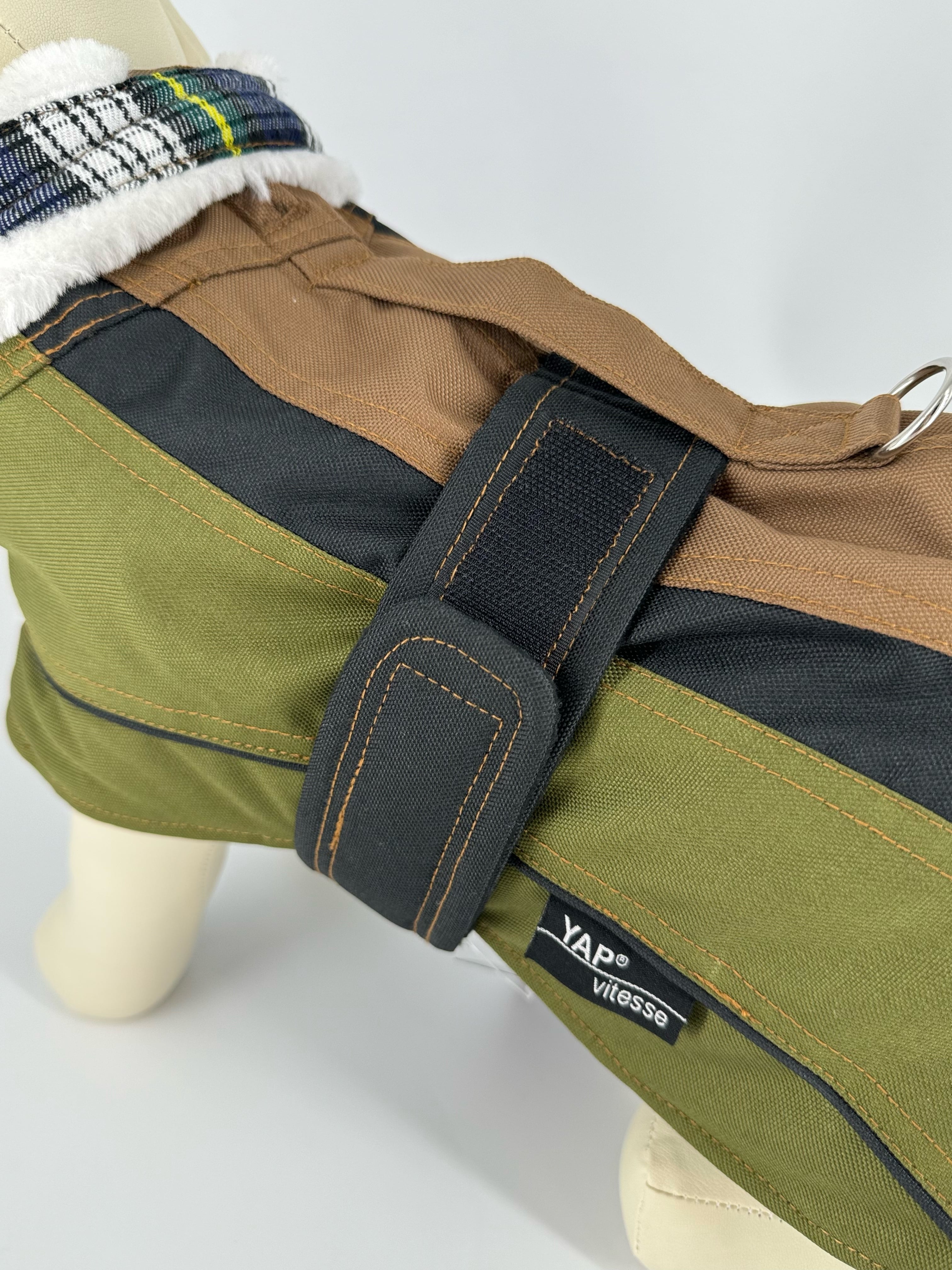 首元にはジッパーが装着されており、折り返してご使用いただくことも可能です。襟内側は折り返した際にチェック柄が見える使用になっており、暖かいだけでなく愛犬の顔周りに華やかさがプラスされます。